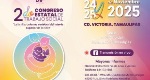 -Con el lema “La familia, columna vertebral del interés superior de la niñez”, el Segundo Congreso Estatal de Trabajo Social se llevará a cabo los días 24 y 25 de noviembre en Ciudad Victoria Noviembre 19 de 2025 Ciudad Victoria, Tamaulipas.- Con el objetivo de compartir, actualizar y enriquecer los conocimientos en materia de cuidado y protección de niñas, niños …