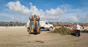 Contribuye Turismo con maquinaria para limpieza de lirio en playa Miramar