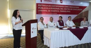Se avanza en la construcción de un equipo humano con profesionalismo Por: Agencias Tampico, Tamaulipas.- Servidores públicos pertenecientes al Centro de Conciliación Laboral en Tampico, recibieron su diploma de certificación como “Mediador Público del Estado”, al haber aprobado el examen psicológico y de conocimientos teórico prácticos, por parte de la Dirección de Mediación de la Secretaría General de Gobierno de …