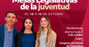 Por: Agencias Ciudad Victoria, Tamaulipas.- El Injuve Tamaulipas lanzó la convocatoria “Mesas Legislativas de la Juventud”, con el propósito de crear un ordenamiento local que salvaguarde los derechos de las y los jóvenes tamaulipecos, enfocada con perspectivas de juventudes y estrategias que solucionen las necesidades colectivas. La directora general del Injuve Tamaulipas, Judith Katalyna Méndez Cepeda, señaló que en coordinación …