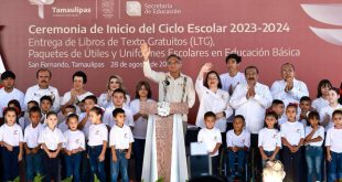 -Durante un enlace nacional de la conferencia mañanera, Américo Villarreal informó que se entregan tres millones de libros de texto gratuitos Por: Agencias San Fernando, Tamaulipas.- En el marco del inicio del ciclo escolar 2023-2024 y la entrega simbólica de más de tres millones de libros de texto gratuitos y 48 mil 937 paquetes de útiles y uniformes escolares de …