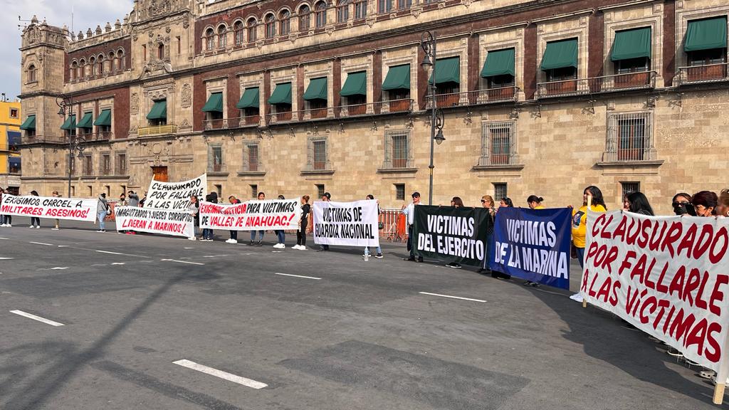 El contingente, integrado por familiares de víctimas de la SEMAR, Guardia Nacional, Ejército Mexicano de la Policía Estatal de Tamaulipas, así como de sobrevivientes, se manifestó frente a Palacio Nacional, donde pusieron algunas pancartas, exhibiendo la molestia de la ciudadanía de Nuevo Laredo ante estos abusos.