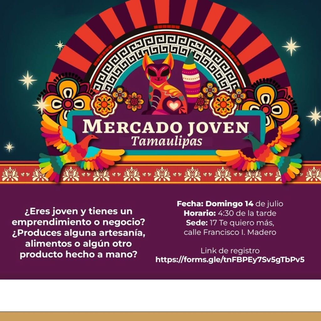 Ciudad Victoria, Tamaulipas.- La iniciativa de emprendimiento, “Mercado Joven”, se realizará nuevamente en Ciudad Victoria, por parte del Instituto de la Juventud de Tamaulipas (INJUVE), con la finalidad de apoyar, impulsar y consolidar emprendimientos juveniles de la localidad.